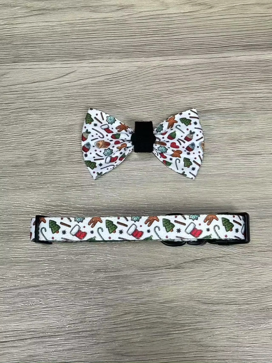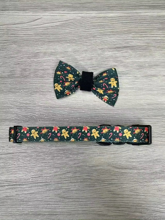 Christmas Bow and Collar Set - Gingerbread Wonderland